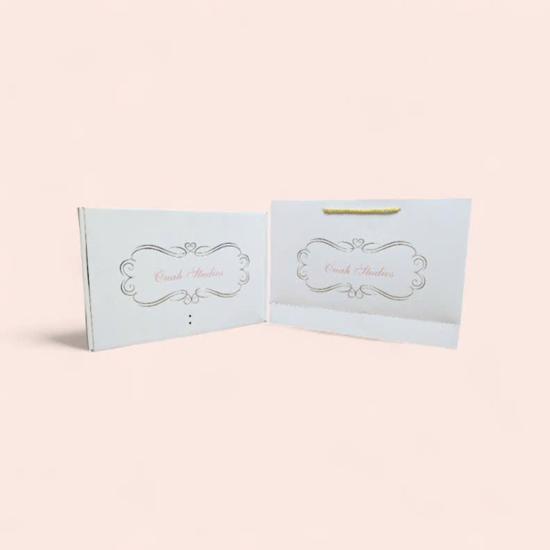 - In màu: Màu nền giấy + ép kim logo thương hiệu
